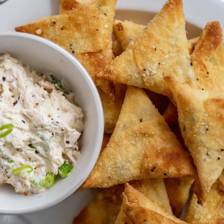 Save Pin I stumbled on this combo during a Sunday afternoon when I had leftover lumpia wrappers and a rotisserie chicken sitting in the fridge. Instead of rolling another batch of lumpia, I cut the wrappers into triangles, crisped them up, and whipped together whatever creamy things I had on hand. The result was so good that my neighbor, who dropped by unannounced, ended up staying for an hour just picking at the bowl.