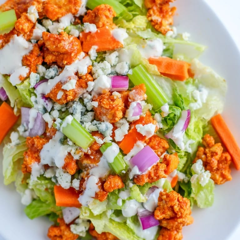 While the classic version is hard to beat, you can easily adapt this to what you have on hand. Sometimes I add cucumber or radishes for extra crunch, or swap the blue cheese for feta if thats what I have in the fridge. The core concept is really just the combination of spicy protein and cool crisp vegetables.