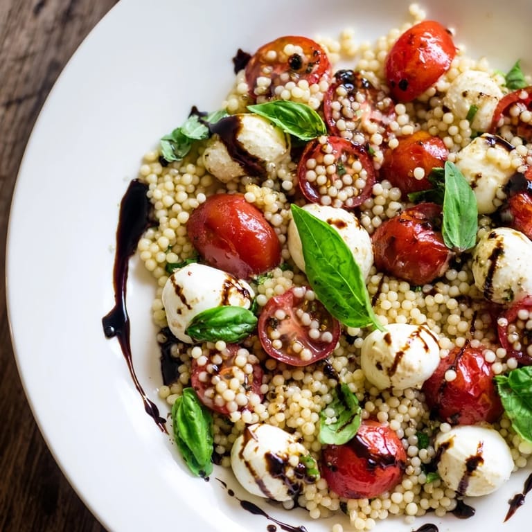 The couscous, tomatoes, and mozzarella can be prepped and stored separately for up to 2 days. Keep fresh basil, olive oil, and balsamic glaze separate until assembly. This approach maintains texture and flavor while keeping everything fresh.