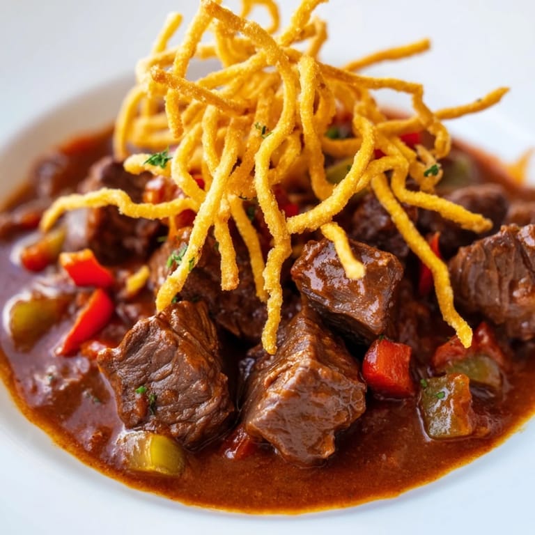 Save Pin I learned the real magic of this dish one winter when my mother watched me cook it and said nothing until I tasted it with her, and then she mentioned quietly that she'd always thought goulash was lonely without the potato strips—that the crunch was the part that made you want another bowl. That observation changed how I understood the dish, and now every time I make it, I think about how texture and taste are having a conversation.