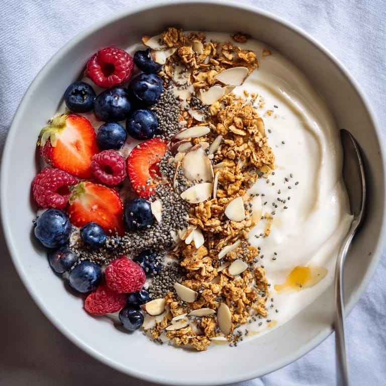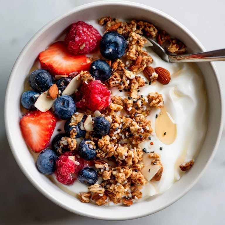 Save Pin There's something quietly satisfying about a breakfast that doesn't require cooking—just assembly and intention. I discovered this bowl during a phase when I was rushing through mornings, grabbing whatever was in the fridge before heading out. Then one Tuesday, I lined up the Greek yogurt, grabbed the granola, and decided to be deliberate about it. The contrast of creamy and crunchy, cold and textured, felt like a small rebellion against sleepy mornings. It became my go-to whenever I needed something that felt both indulgent and nourishing.