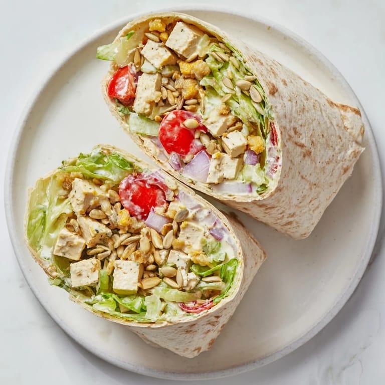 Save Pin I discovered this wrap on a Tuesday when I had everything except chicken in my fridge and no time for a proper meal. Opening a can of chickpeas and pressing some tofu felt like an experiment, but the moment that creamy Caesar dressing coated the lettuce, I knew I'd stumbled onto something worth repeating. The sunflower seeds added this unexpected crunch that made it feel fancy without pretending to be. Now I make it whenever I want something that tastes indulgent but actually fuels my day.