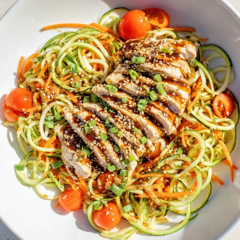 Save Pin There's something about the smell of chicken hitting a hot pan that makes everything feel possible—especially when you're trying to eat well but refuse to sacrifice flavor. I stumbled onto this combination on a humid summer afternoon when my fridge had excellent intentions but my energy was low, and somehow spiralizing cucumbers while listening to music turned into the most satisfying lunch I'd made in weeks.
