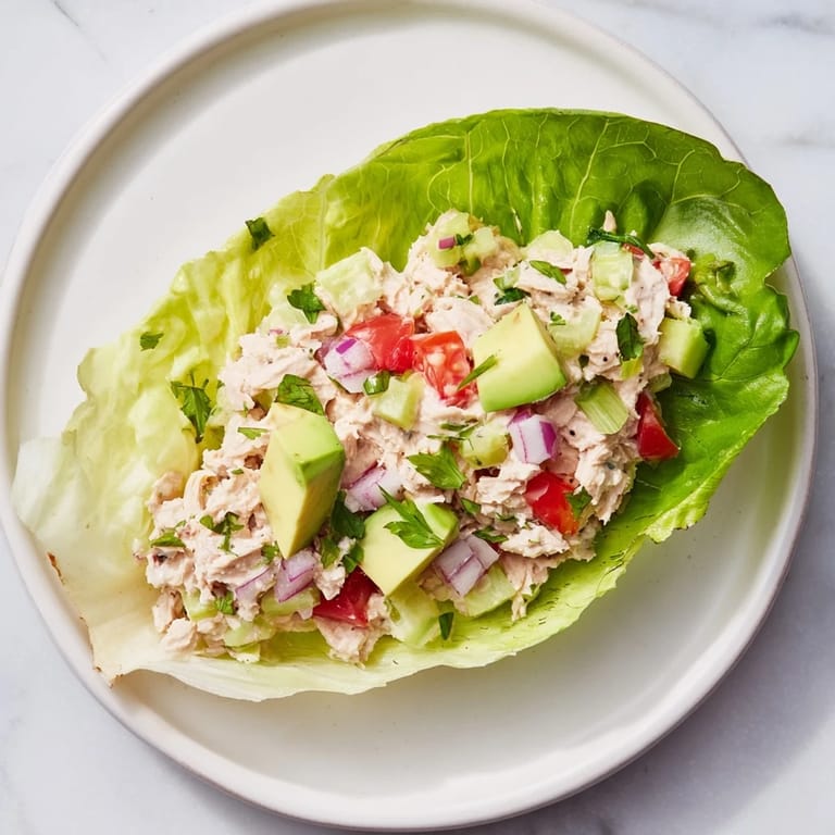 Save Pin A fresh and satisfying lunch or light dinner featuring protein-packed tuna salad wrapped in crisp lettuce leaves—perfect for a quick, low-carb, and nutritious meal.