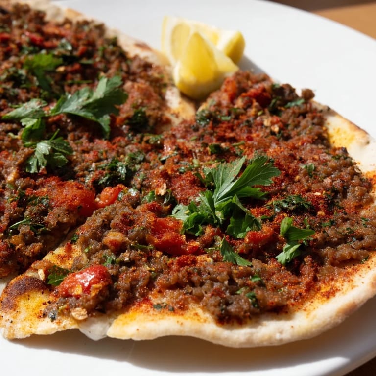 Lahmacun tastes best eaten fresh and warm, ideally with your hands, torn off piece by piece. You can roll them up Turkish-street-style with fresh herbs and sliced onions tucked inside, or eat them flat with a squeeze of lemon and a pinch of sumac. The tartness of the lemon cuts through the richness of the meat perfectly, and if you've never tried sumac, this is your moment to discover why it's worth keeping in your spice cabinet.